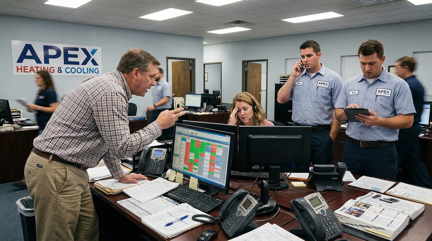 The day would stabilize. Customers were helped. Emergencies were handled. But the next day looked almost exactly the same. By midweek the technicians were exhausted, dispatchers were frustrated, and Carlos felt like he spent every day racing from one crisis to the next.